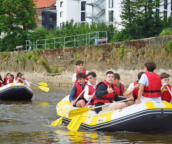 Erlebt die Weser bei einer Paddeltour in unseren Raftingbooten. Als Alternative zum Kanufahren bieten wir zwischen Rinteln und Minden spannende Touren in großen 9-Personen-Schlauchbooten an. Als Gruppe sitzt ihr sprichwörtlich alle in einem Boot. Gruppendynamik und Spaß kommen hier nicht zu kurz.